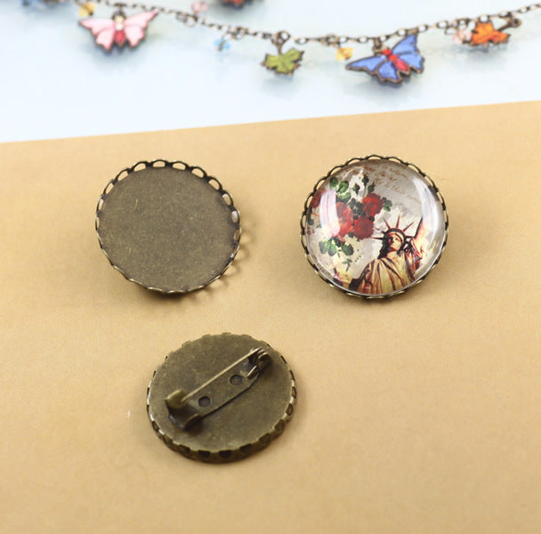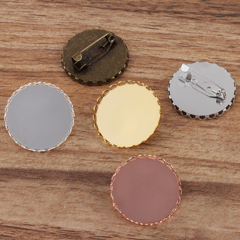 50 Scallop Edge Safe Brooch 18KGP 25mm Round Cabochon Blank Base Gemstone Setting