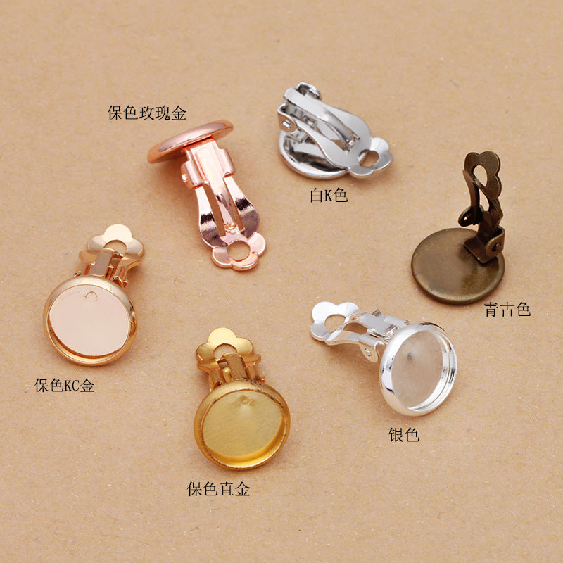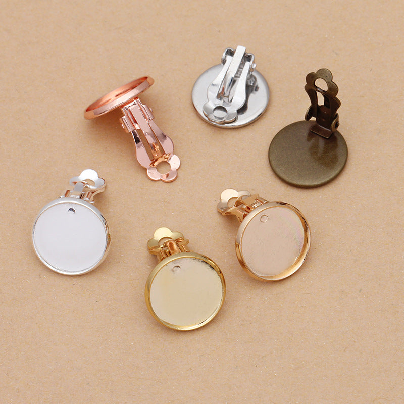 50 Plain Edge Bezel Cup Ear Snap Clip Earrings 18KGP 10mm 12mm 14mm 16mm 18mm Round Cabochon Blank Base Gemstone Piece Setting
