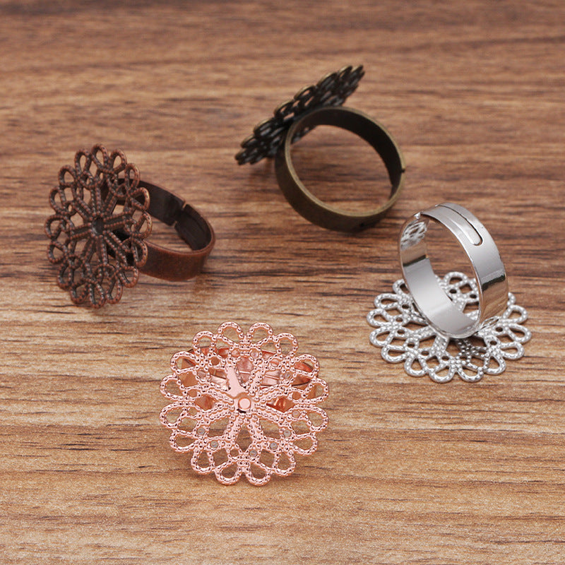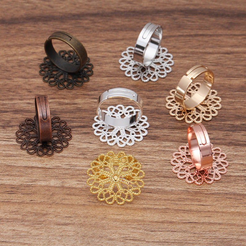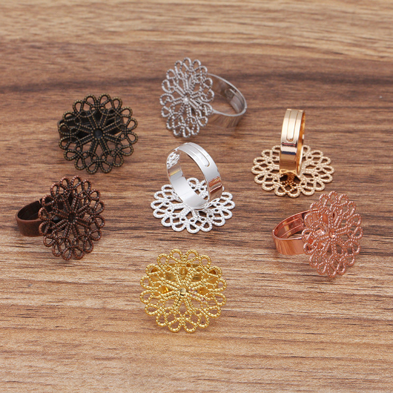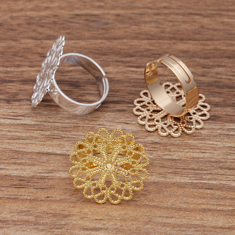 100 Filigree Floral Pad Openable Circle Ring 18KGP 23mm Cabochon Blank Base Gemstone Setting