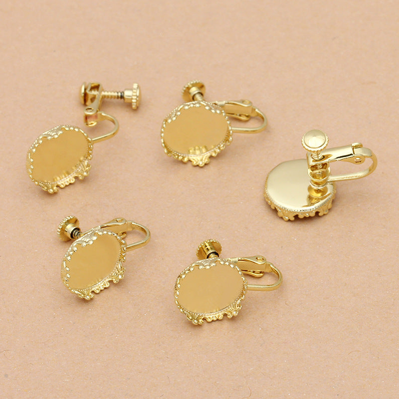 100 Crown Edge Bezel Cup Ear Screw Clip Earrings 18KGP 12mm Round Cabochon Blank Base Gemstone Piece Setting