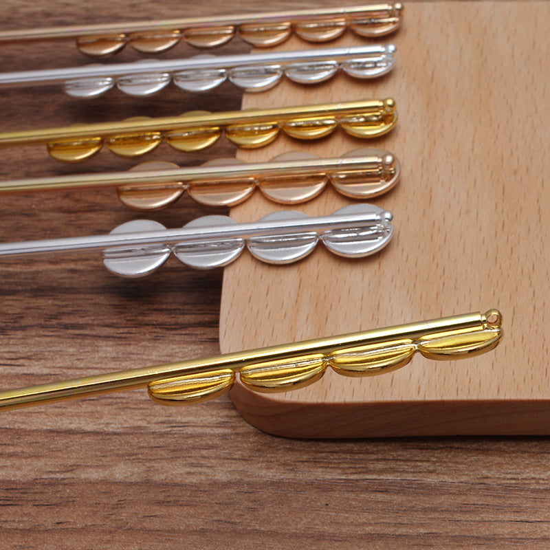 5 Multi Plain Edge Bezel Cup Chinese Stick Hairpin 18KGP 8mm 10mm Round Cabochon Blank Base Gemstone Piece Setting