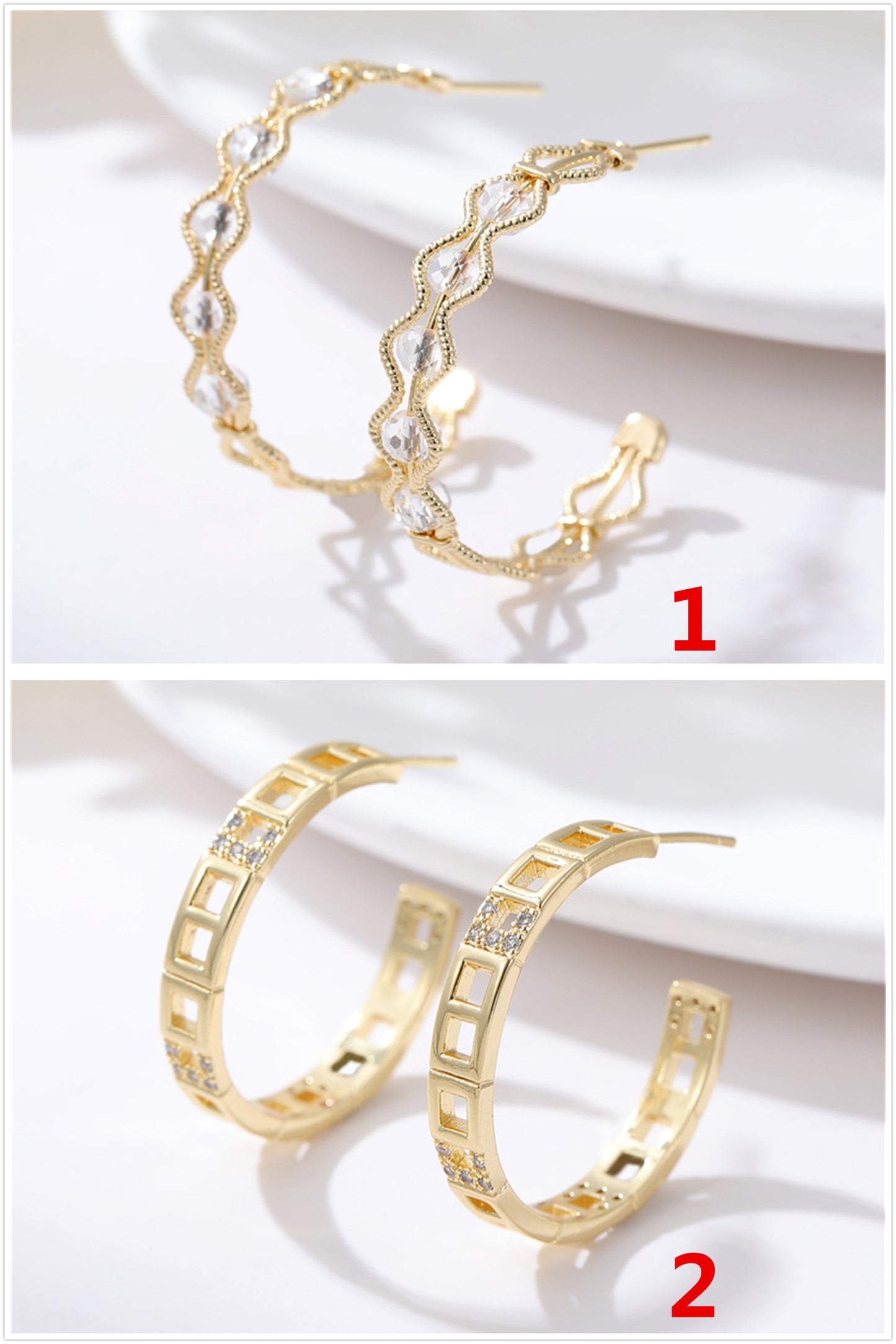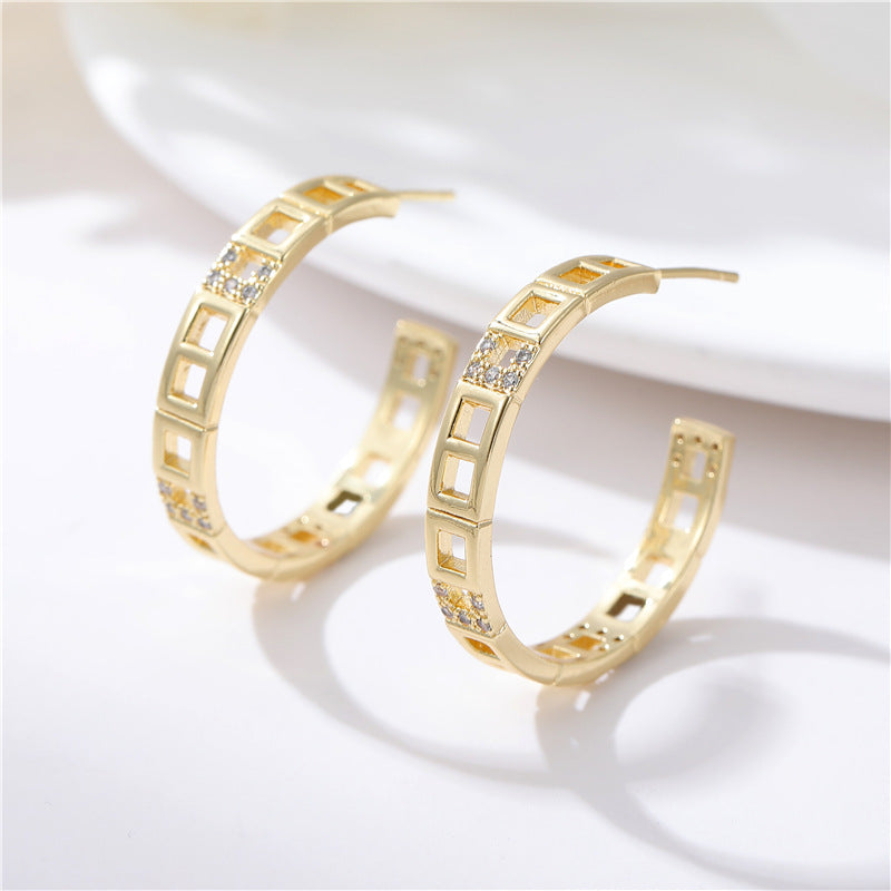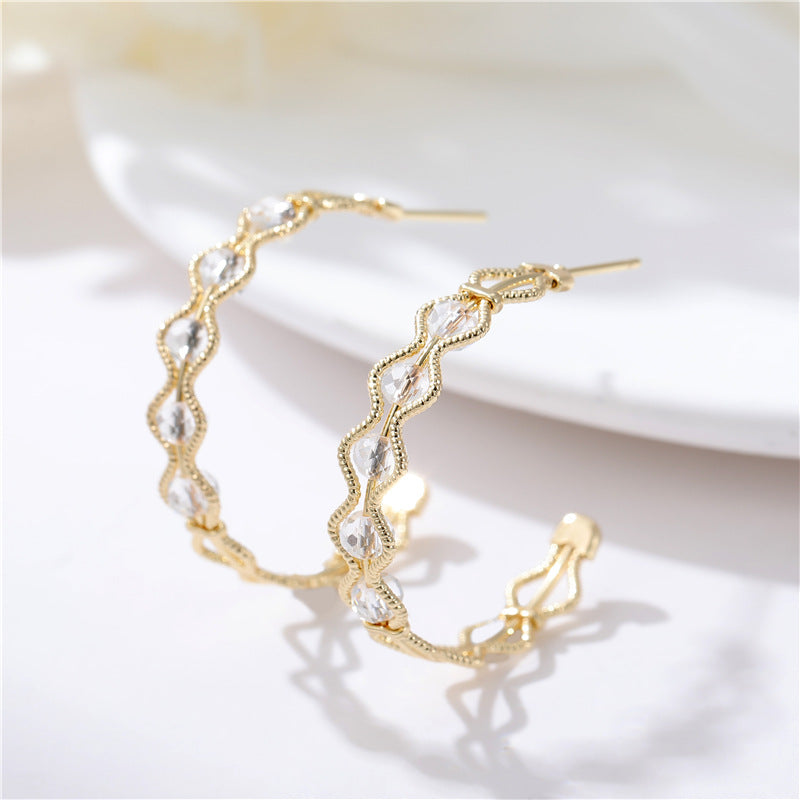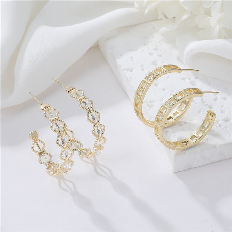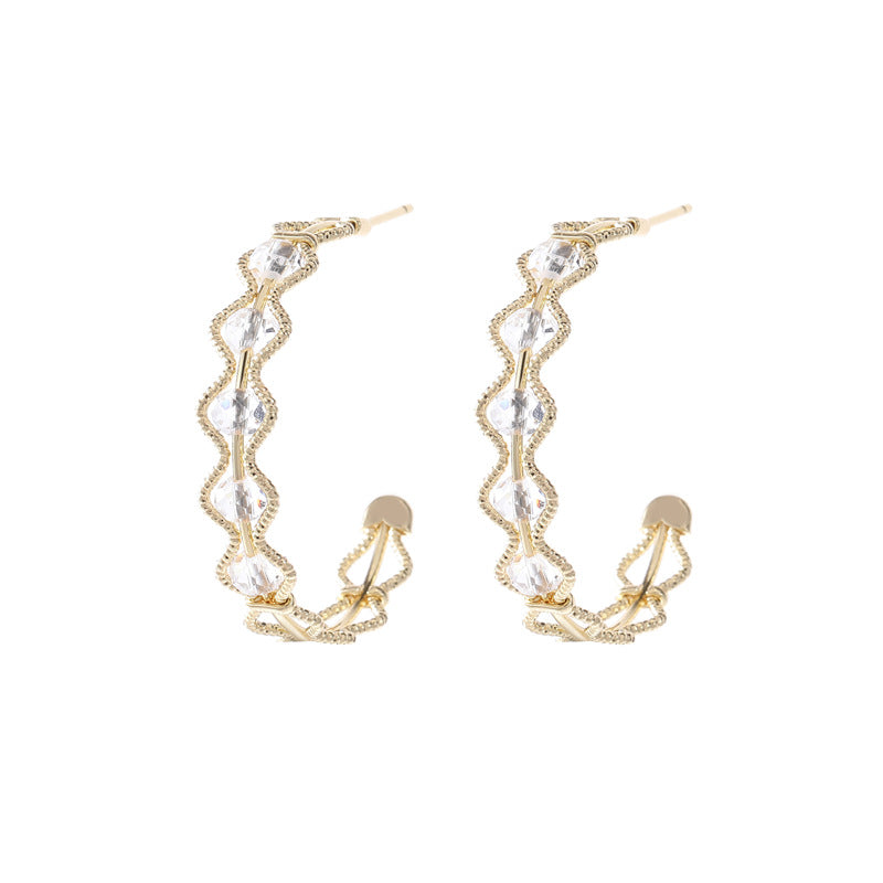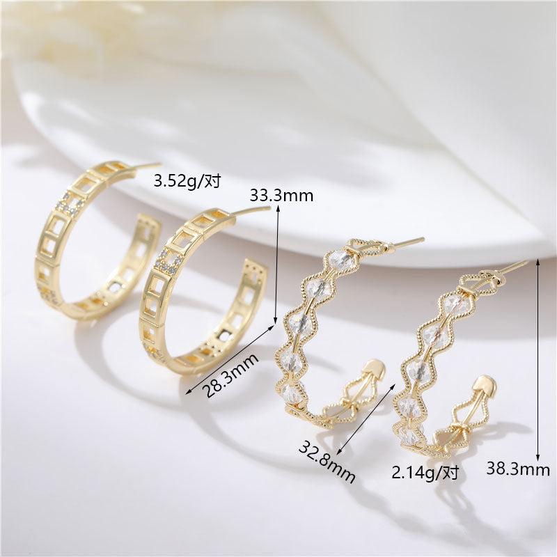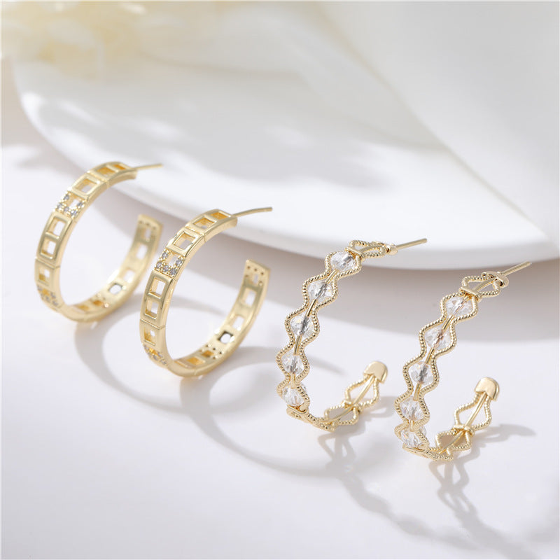 4 Semi Circle Cable Chain Stud Earrings 14K GF Rhinestone Embellished Earing