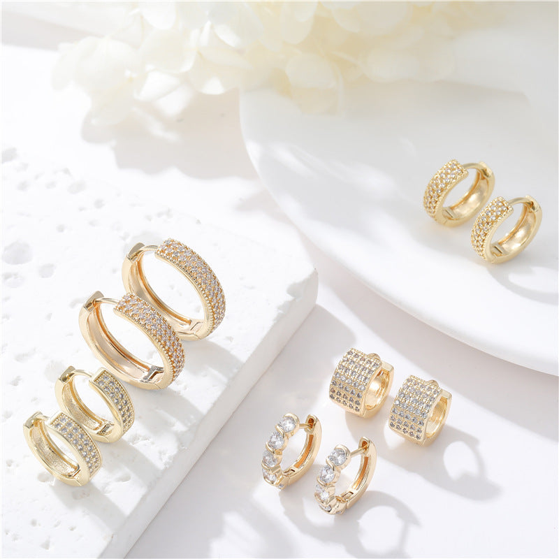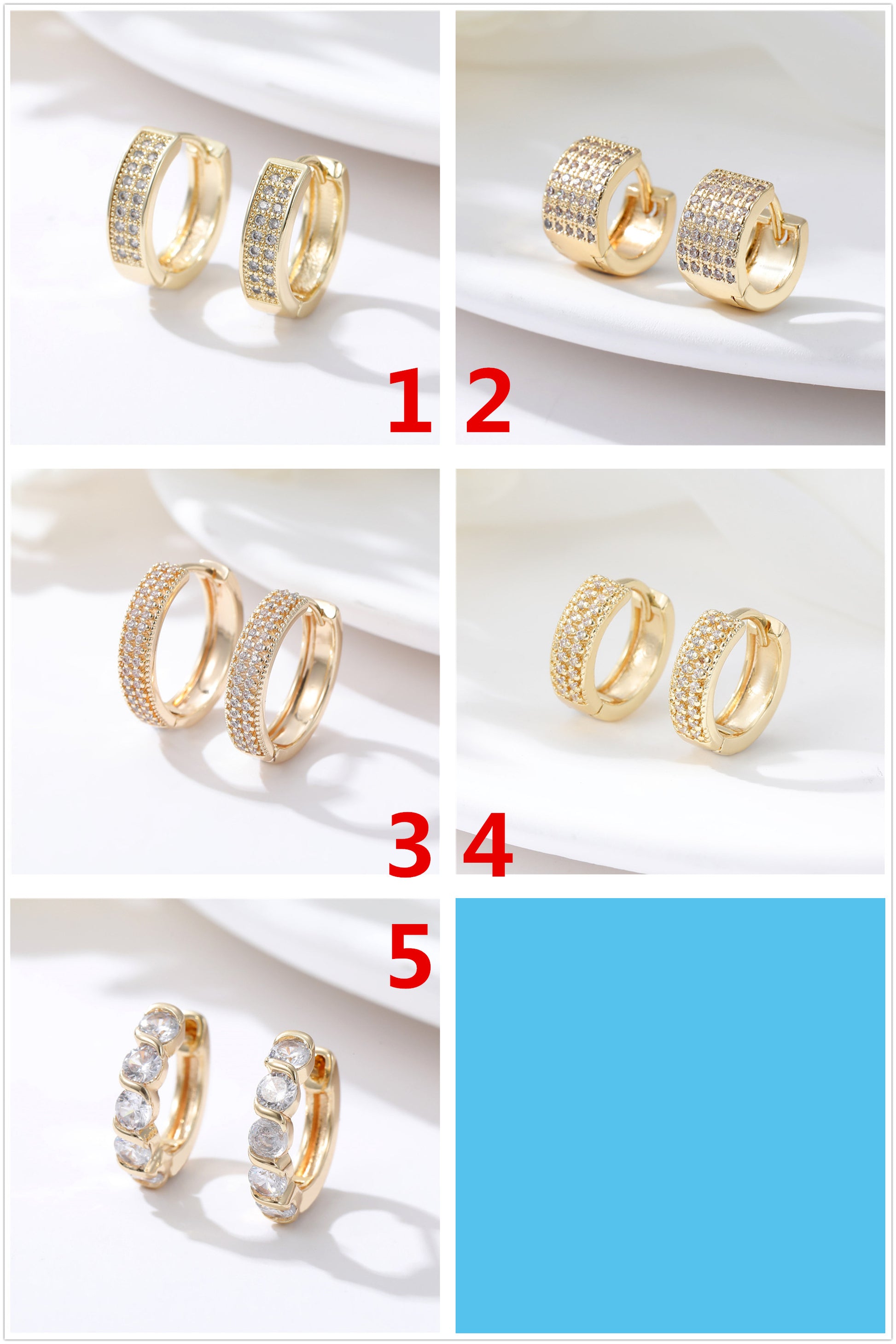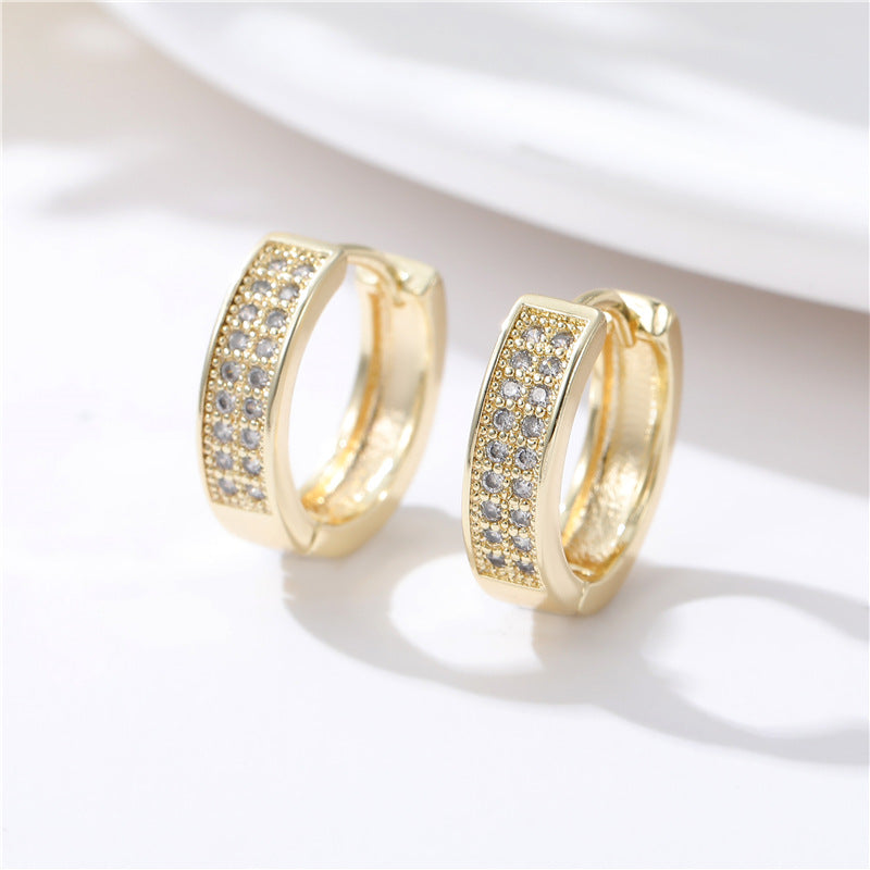 4 Chunky Round Hoop Earrings Rhinestone Embellished 14K GF Earing