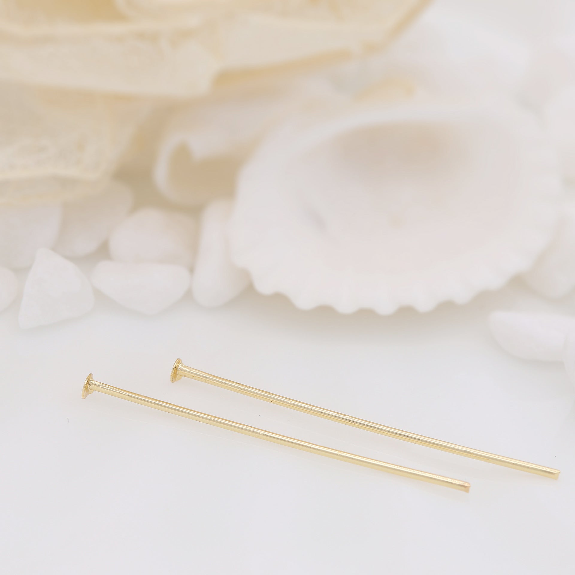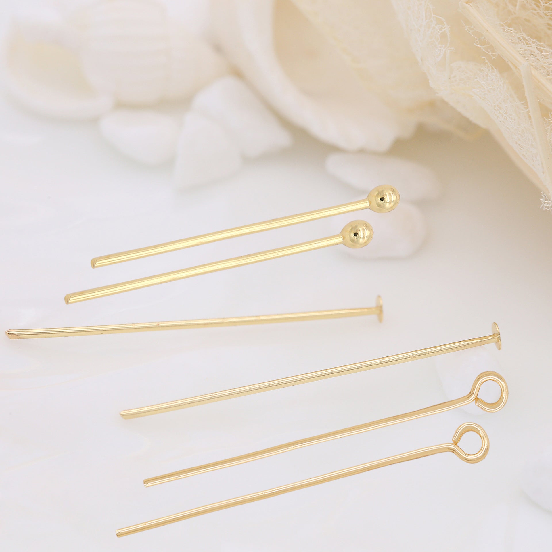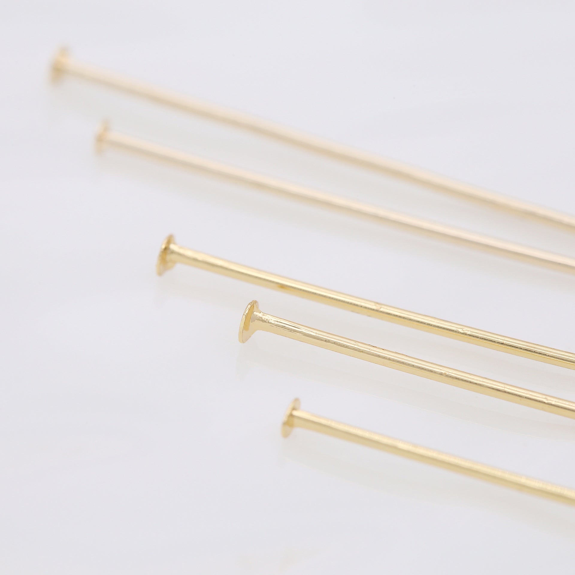 Bulk 100 Plain T Flat Top Round Bead Eye Pin Head Pins 14K GF