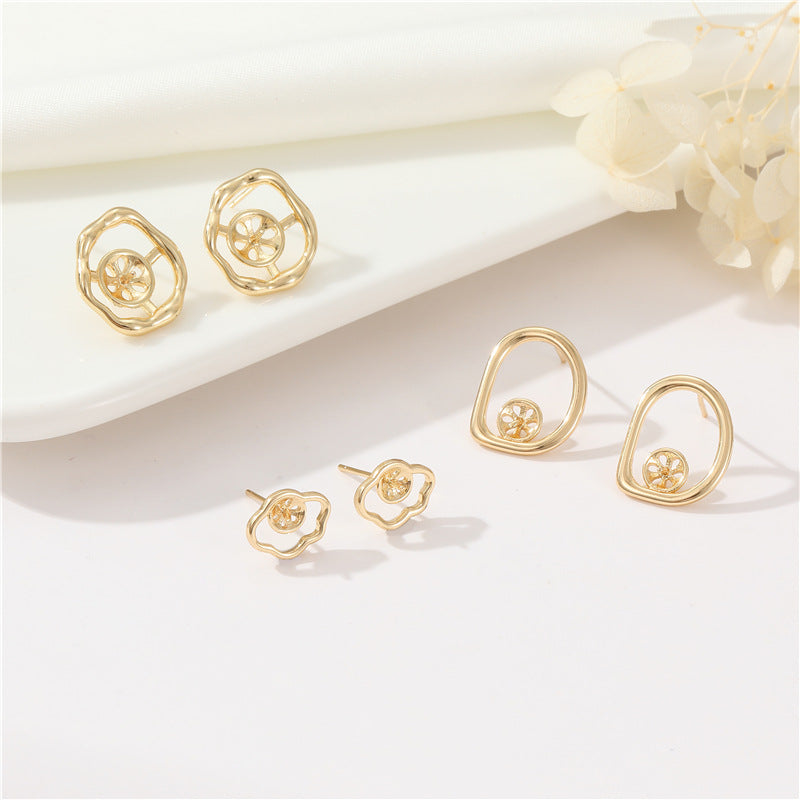 4 Cloud Circle Stud Earrings 14K GF Half Drilled Pearl Bead Blank