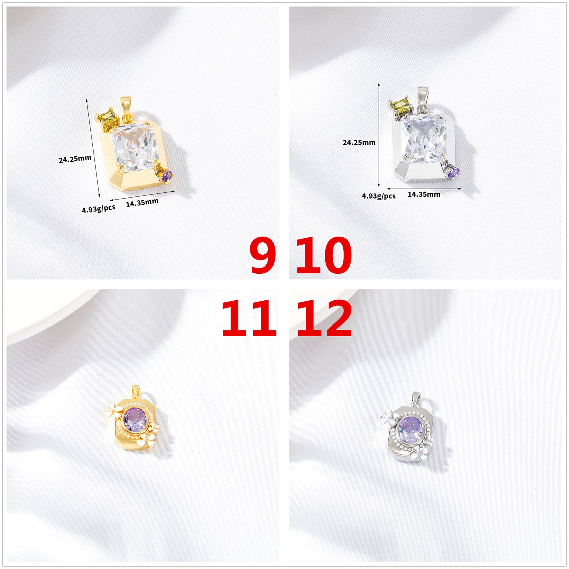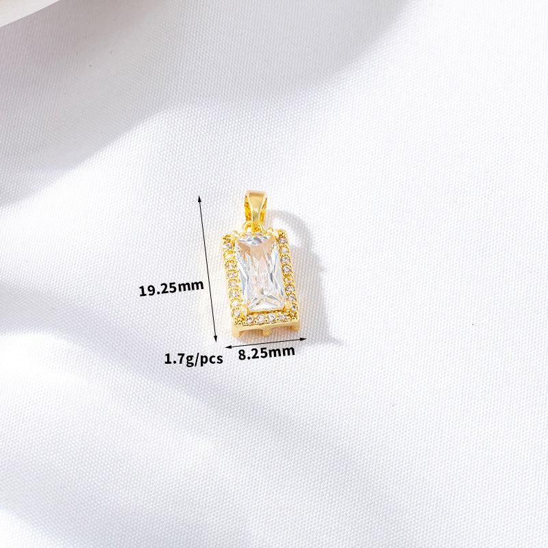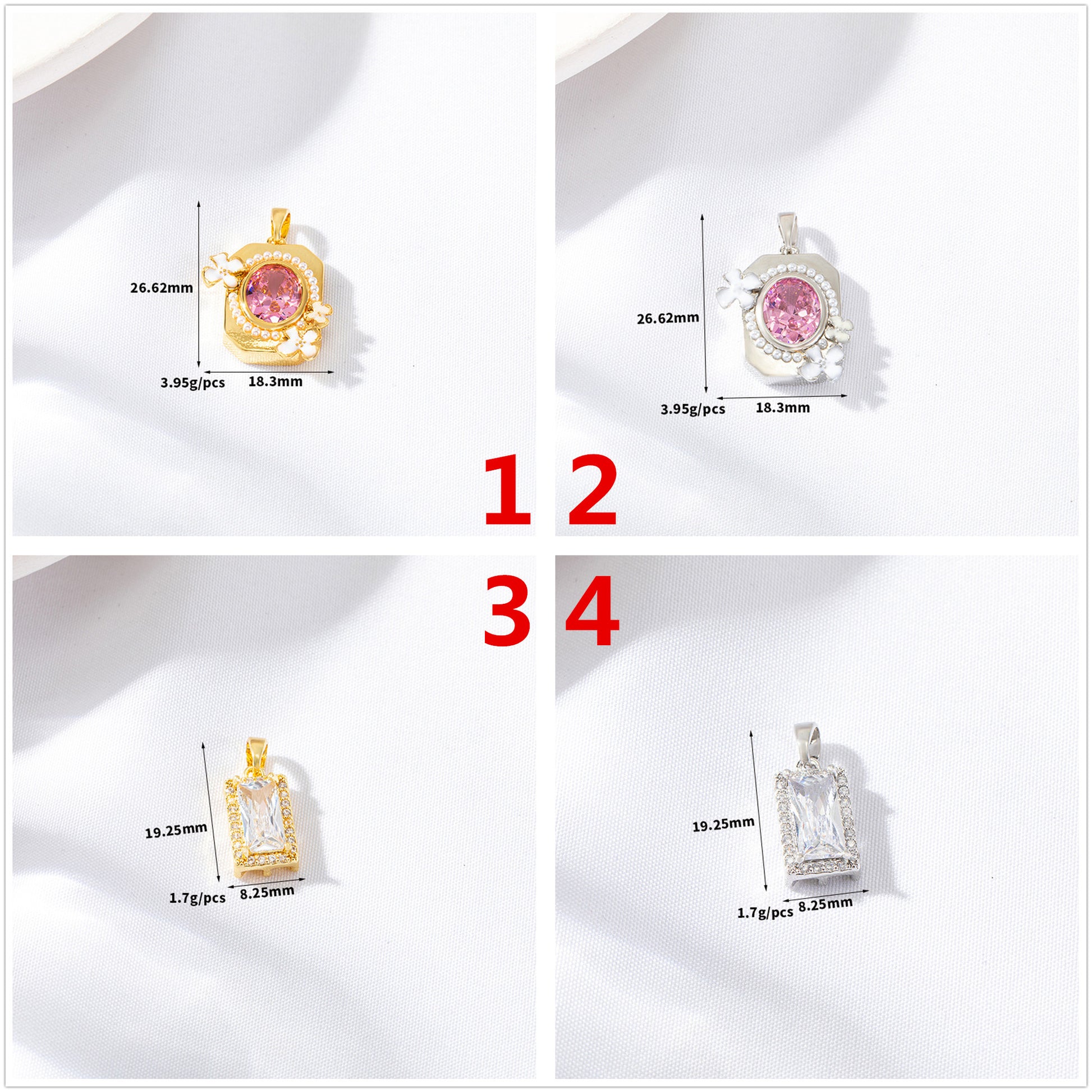 2 Oval Rectangle Charm Pendant Rhinestone Embellished 14K GF
