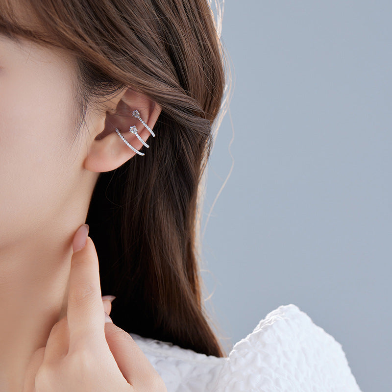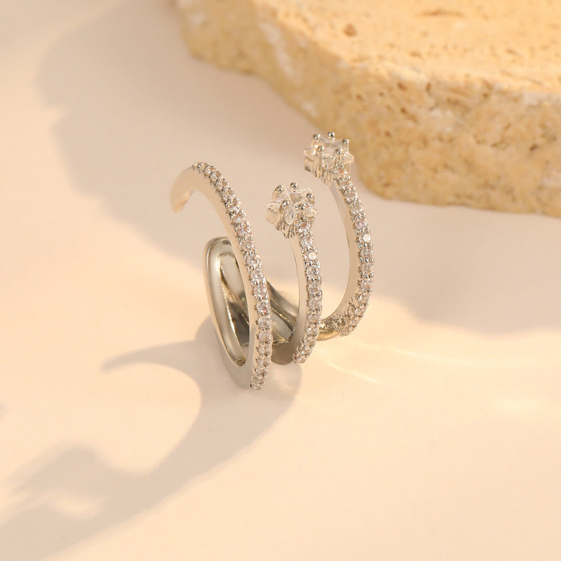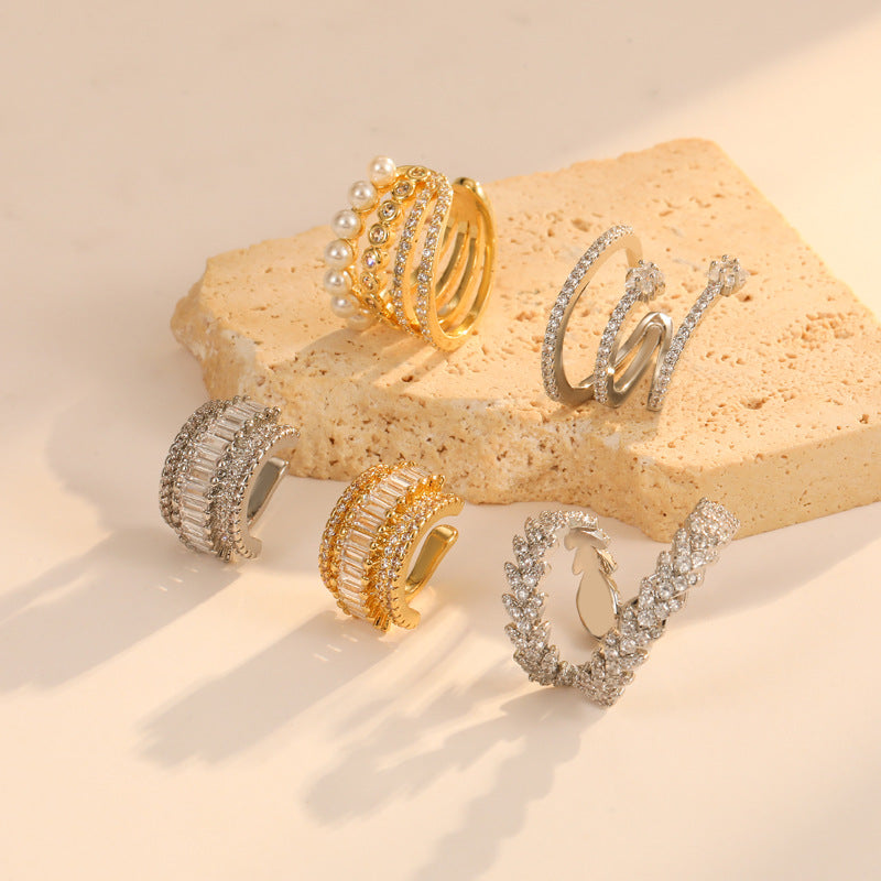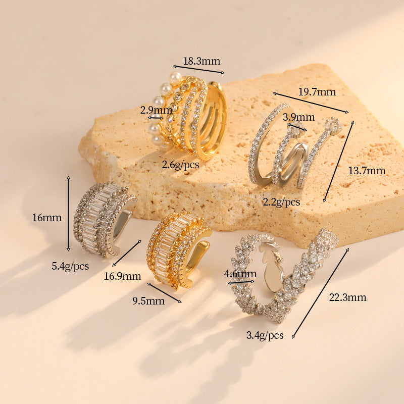 4 Chunky Earcuff Earrings Rhinestone Embellished 14K GF Earing