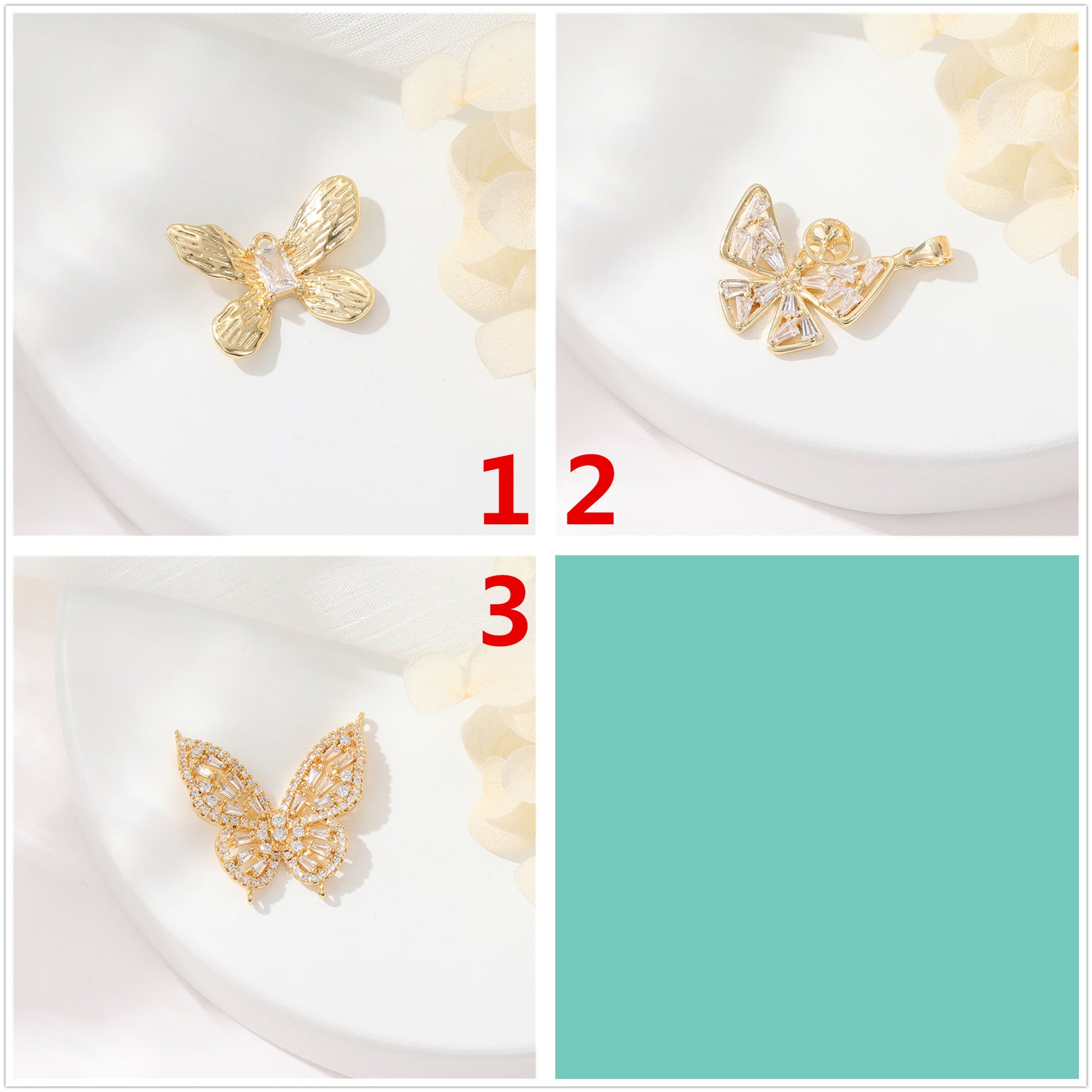 2 Butterfly Charm Pendant Rhinestone Embellished 14K GF