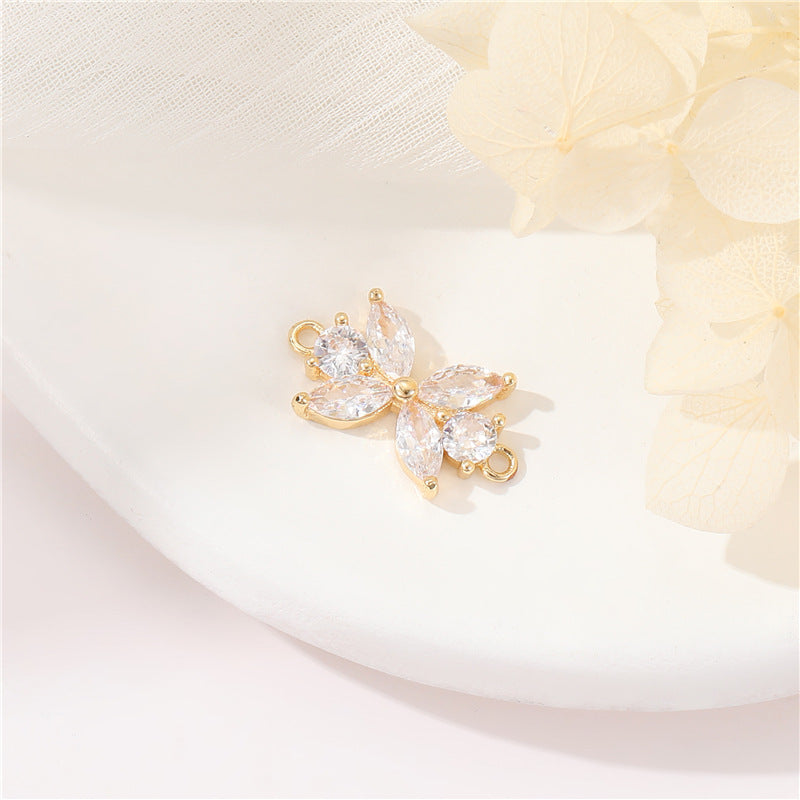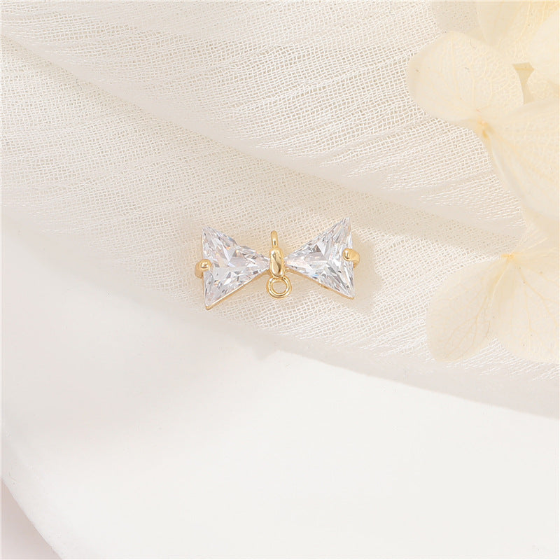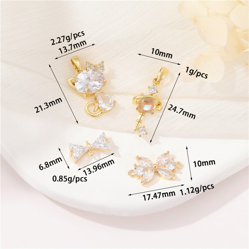 2 Key Cat Pendant Double Looped Bowknot Charm Connector Rhinestone Embellished 14K GF