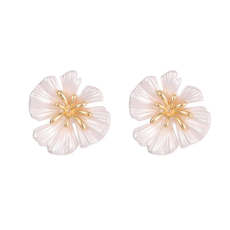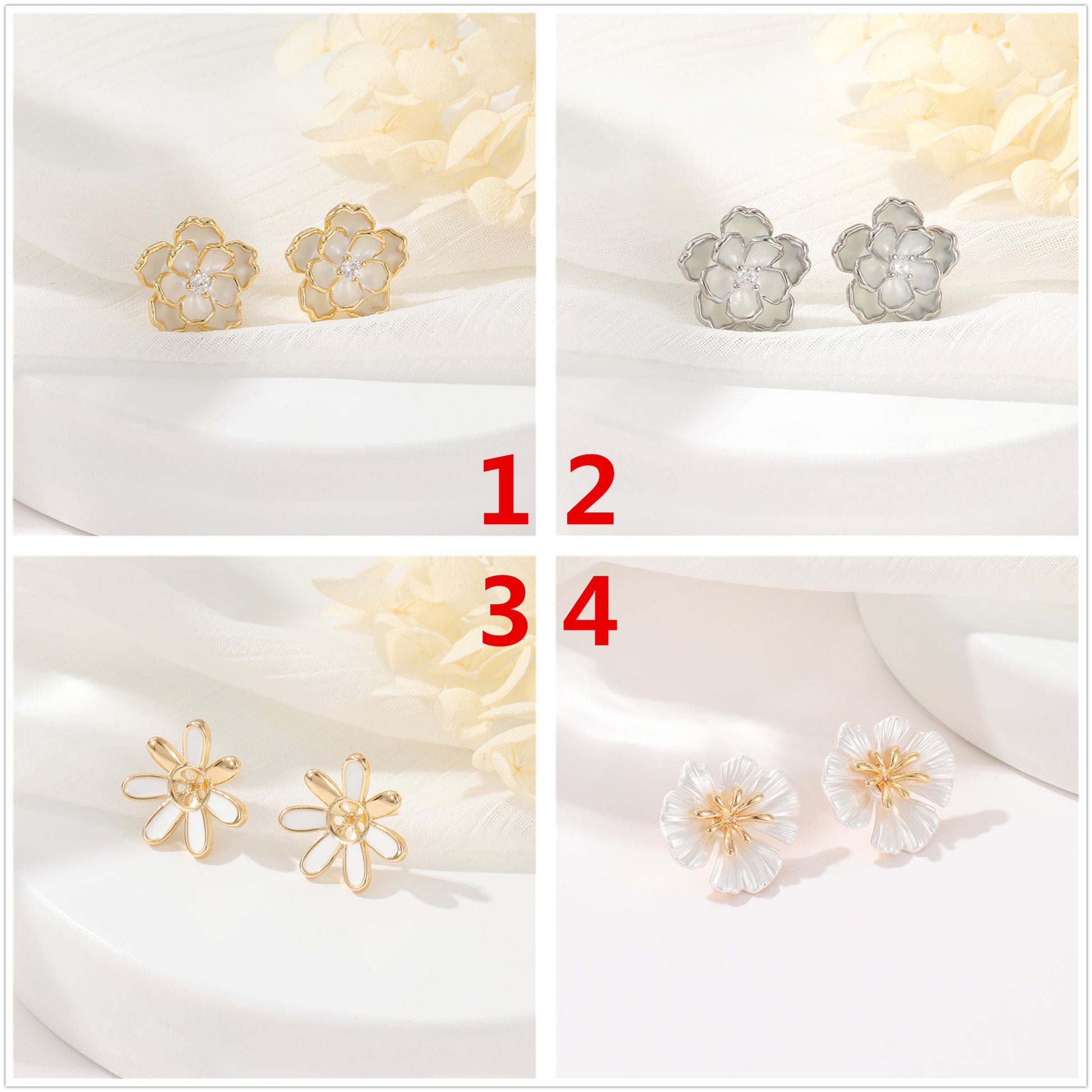 4 Floral Stud Earrings 14K GF Enamel Epoxy Rhinestone Earing
