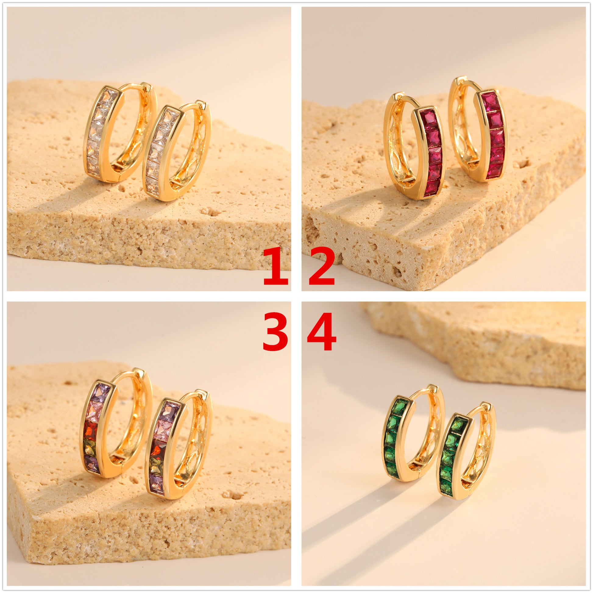 4 Round Hoop Earrings Rhinestone Embellished 14K GF Earing