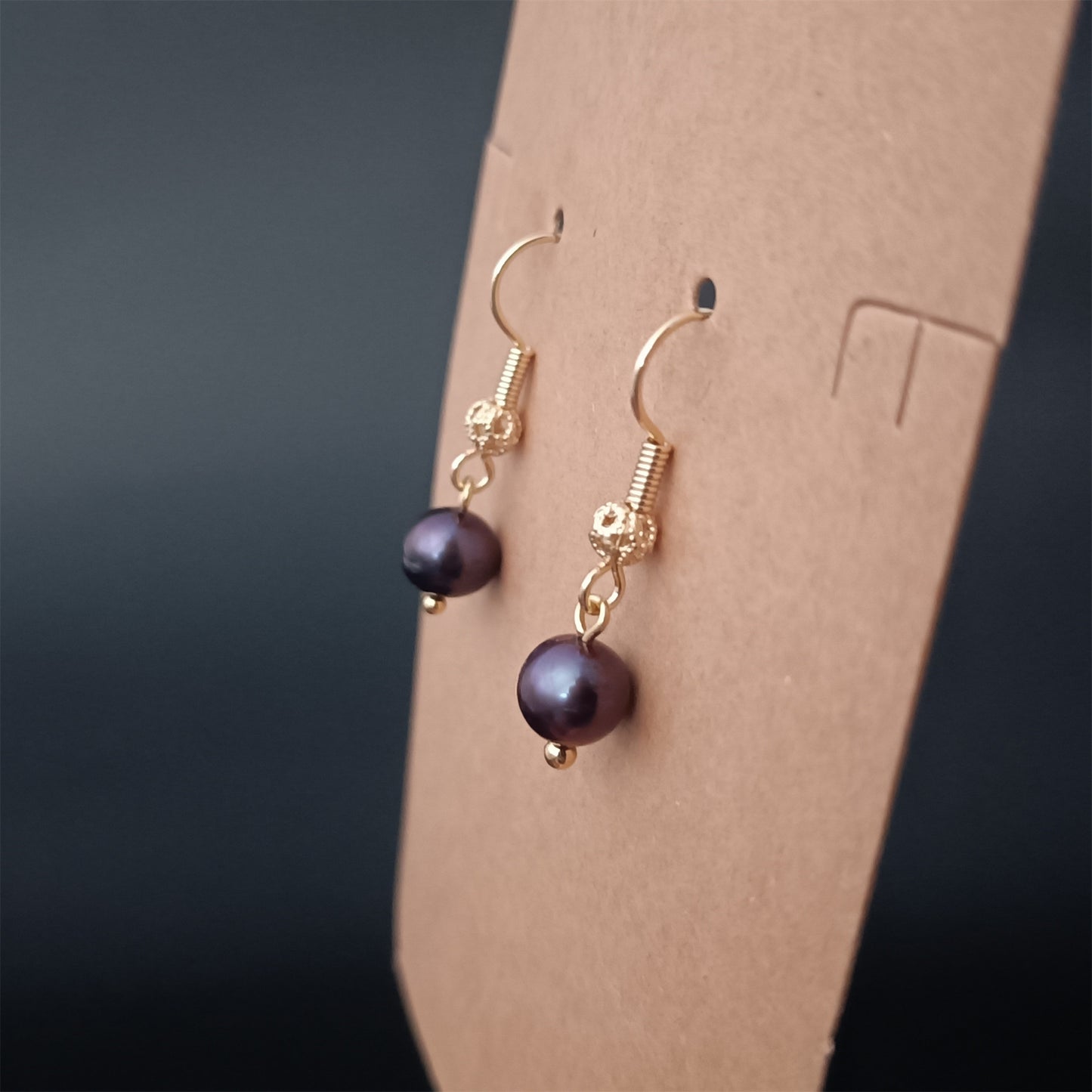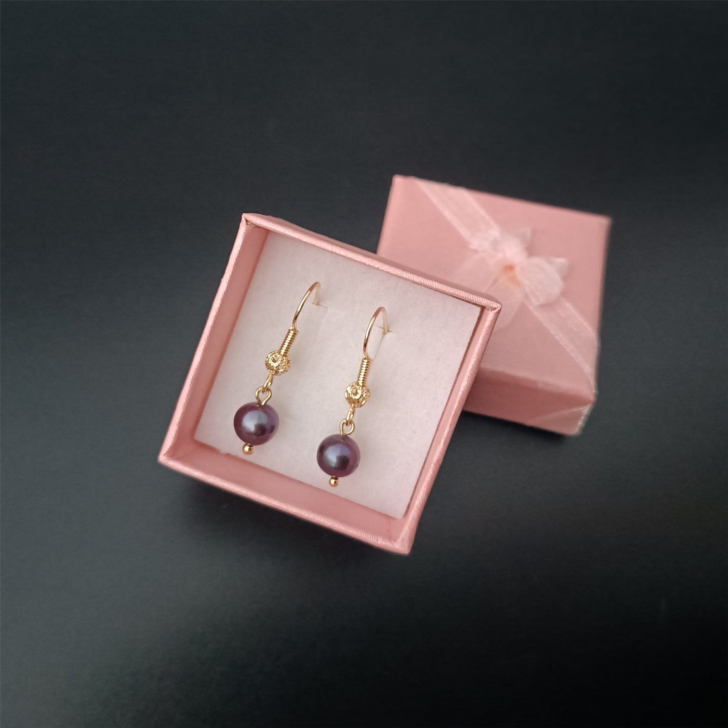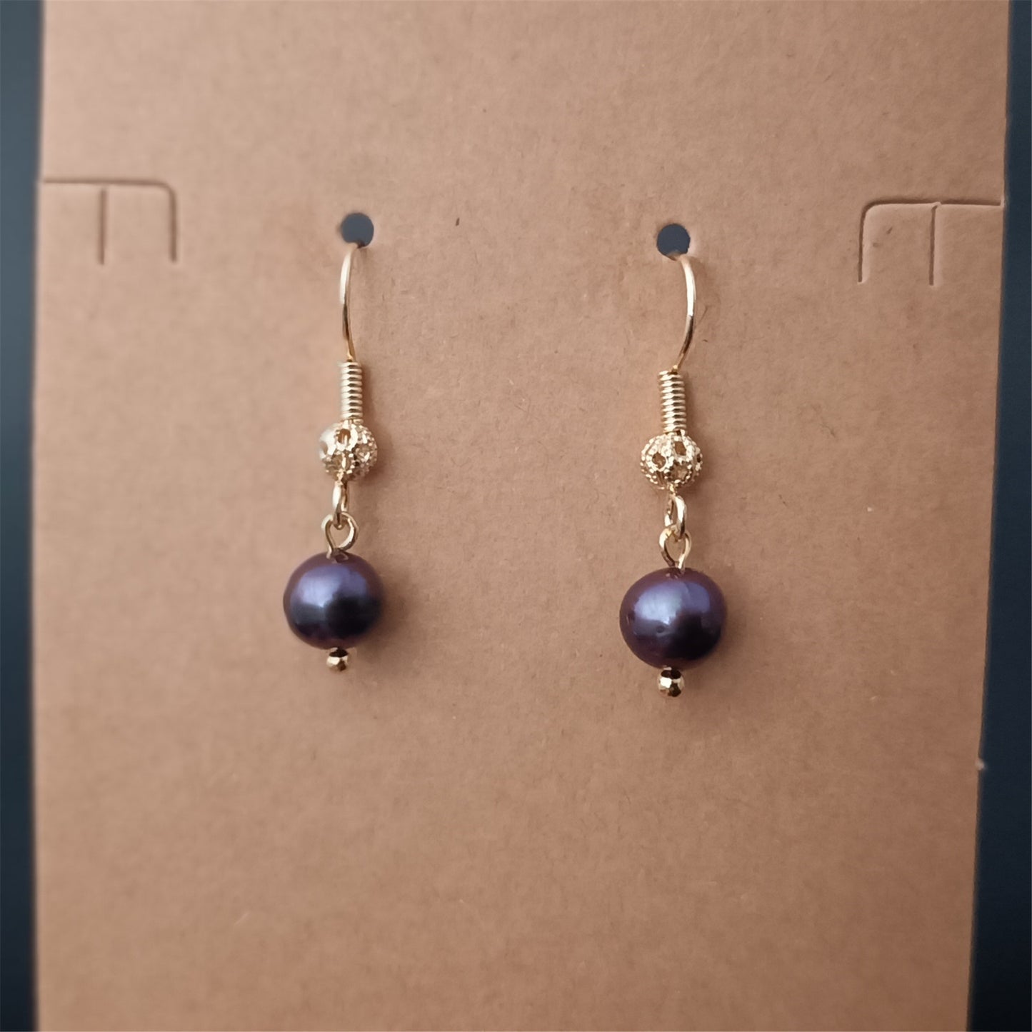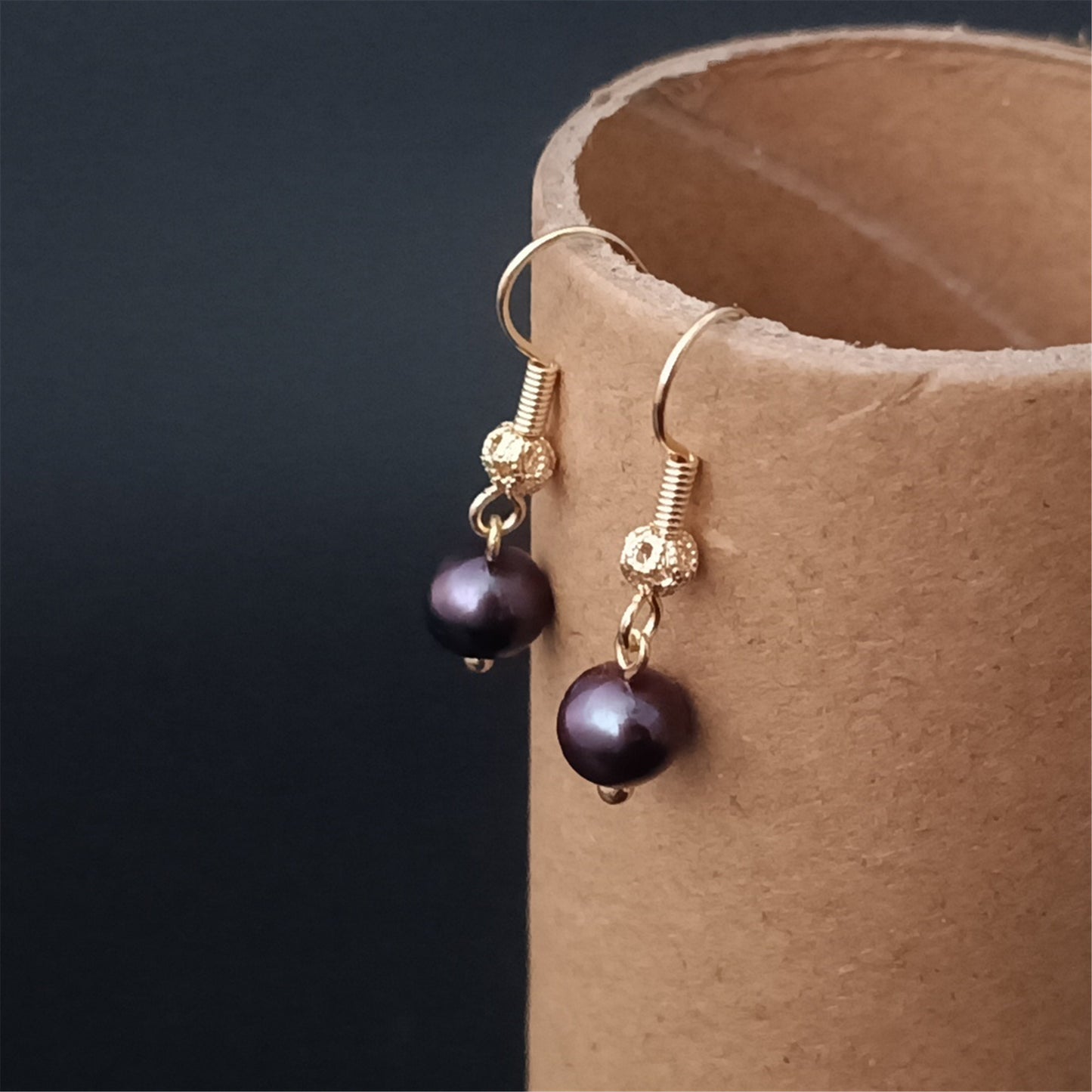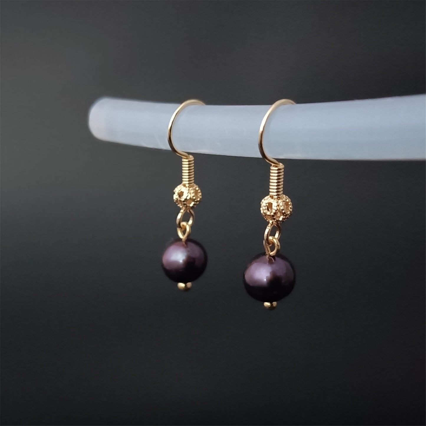 Natural Freshwater Black Pearl Earrings Daily Wear 14K GF Hollow Ball Ear Hook Dangle Earing