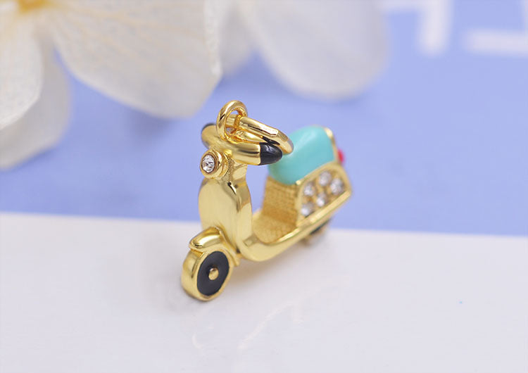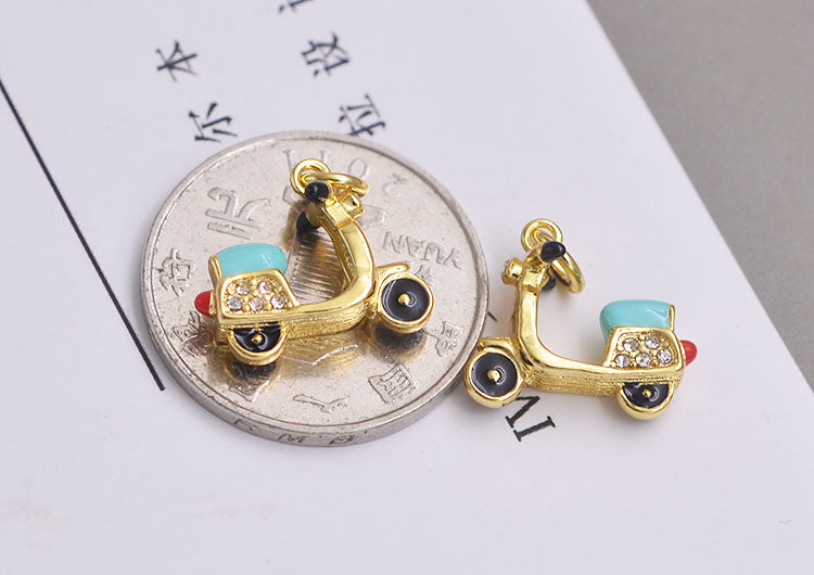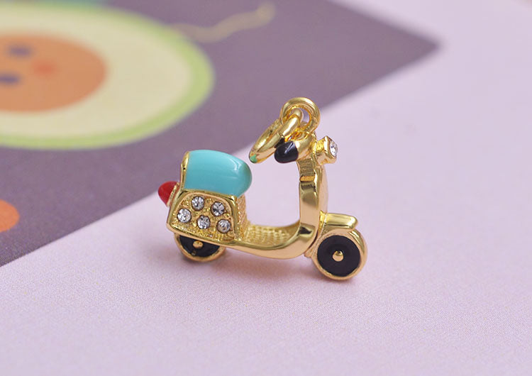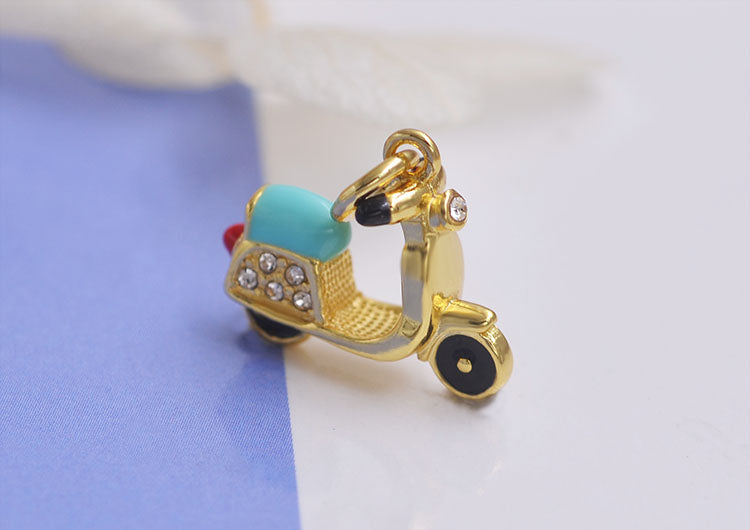 Sterling Silver Enamel Epoxy Motorcycle Charm Pendant S925 Finding