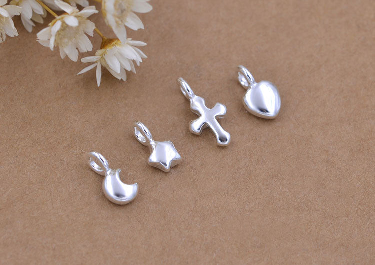 Sterling Silver Tiny Star Moon Heart Cross Charm Pendant S925 Finding