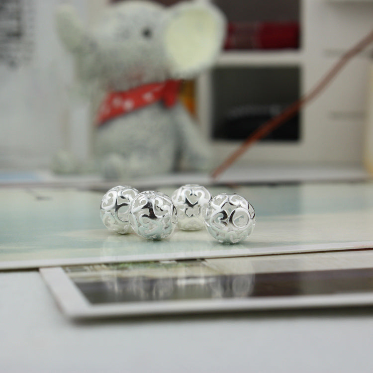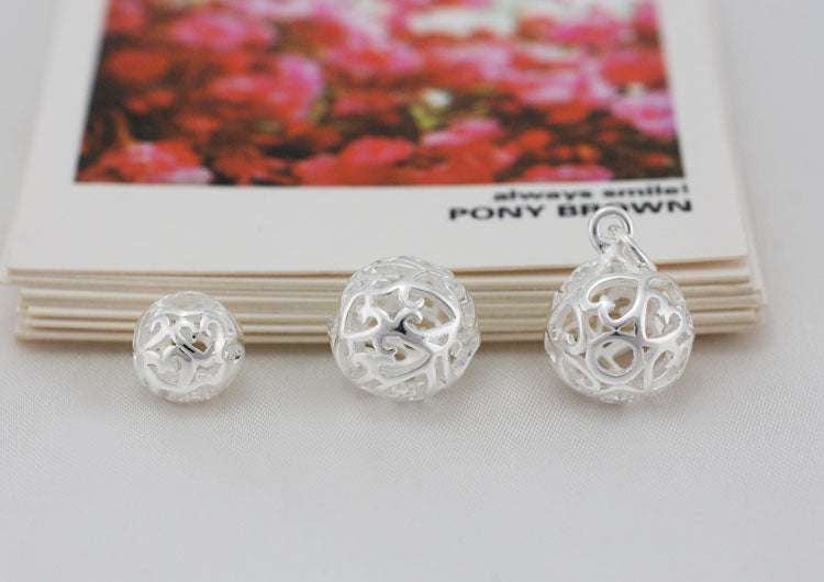 Sterling Silver Tiny Hollow Heart Ball Charm Pendant S925 Finding