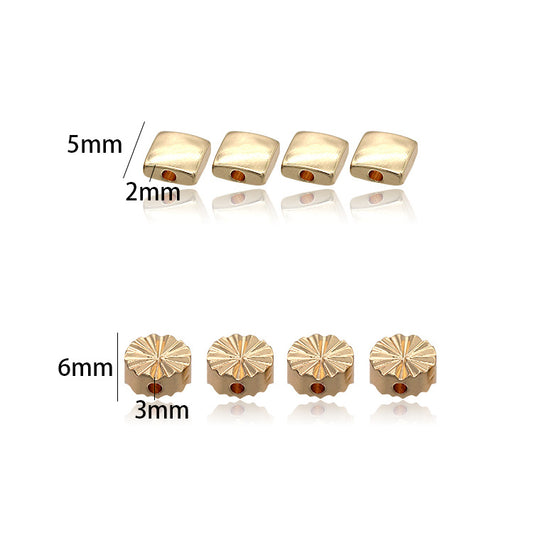 10 pièces de perles rondes sculptées carrées brillantes, entretoise de perles de charme en cuivre 14K GF