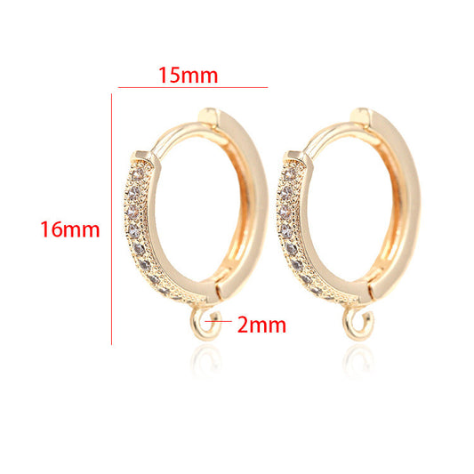 4 boucles d'oreilles créoles rondes avec boucle ornées de strass 14K GF Earing